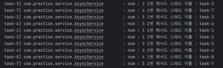 log.info("num : " + num + " 1번 메서드 스레드 이름 : " + Thread.currentThread().getName());