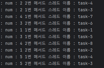 아직 이해가 되지 않는다면 스레드 이름 : task-의 번호와 위의 테스트 코드를 확인해 보면 된다.
