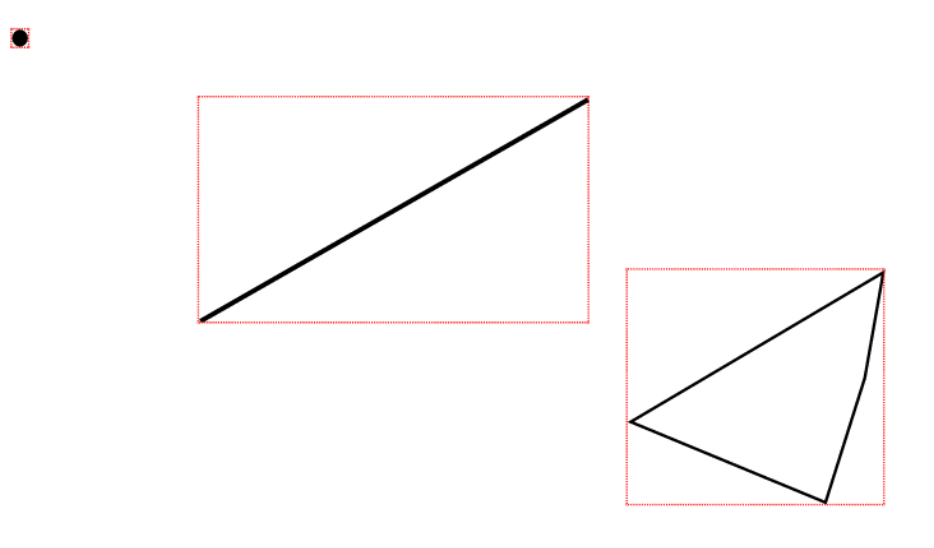 공간 데이터 타입에는 크게 Point, LineString, Polygon이 있다. 최소 경계 사각형은 해당 도형들을 감싸는 사각형을 이야기한다. 위의 이미지에서 최소 경계 사각형을 그리게 되었을 때를 살펴보자.
